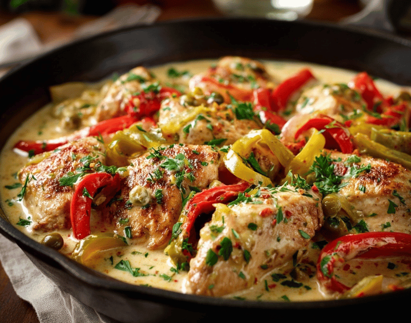 Creamy Pepperoncini Chicken Skillet – Quick & Zesty One-Pan Dinner