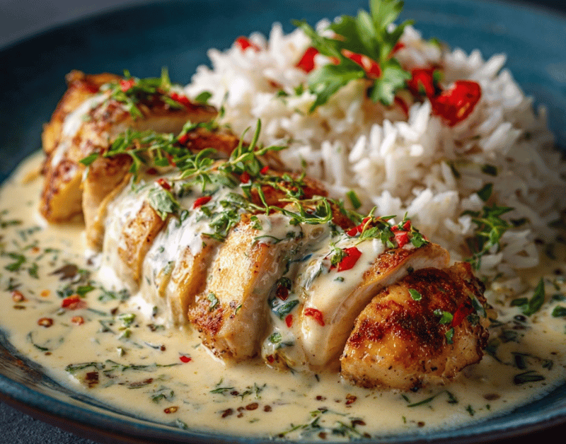 The beauty of this one-pan dinner lies in its simplicity and sophistication. The rice cooks directly in the coconut broth, absorbing every bit of flavor while the chicken develops a golden crust on top. It’s the perfect balance of comfort and elegance—ideal for impressing someone special or treating yourself to something extraordinary.