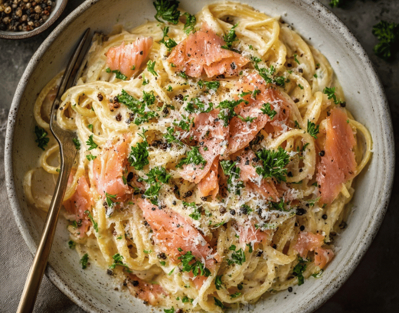 Smoked Salmon Carbonara – A Creamy, Elegant Twist on the Classic Pasta