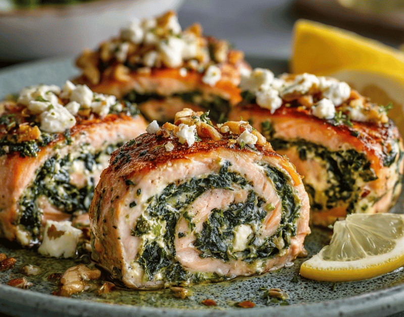 Spinach & Feta Stuffed Salmon Pinwheels – Elegant & Healthy Dinner Idea